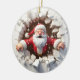Ho Ho Ho! Sehen Sie, wie der Weihnachtsbaum mit reiner Urlaubsfreude durchbricht! Dieses reizvolle Keramik-Ornament besticht durch einen fröhlichen Weihnachtsmann, der durch eine knisternde Oberfläche bricht, in der sich seine Arme weit verbreiten. Der dimensionale Risseffekt erzeugt eine auffällige 3D-Illusion, die ein Gesprächsstarter auf jedem Weihnachtsbaum sein wird. Ideal für Familien, die ein wahres Urlaubshotel in Liebe haben.