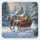 Weihnachten Ein Pferd Sleigh Santa Quadratischer Aufkleber