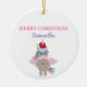 Weihnachten Einhorn Weihnachtsmannmütze Gold Glitz Keramik Ornament