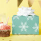 Dieses aquamarine, grün-weiße Schneeflockenpapier ist perfekt, um Weihnachts- und Winterurlaubsgeschenke zu verpacken.