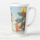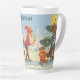 Leicht zu anpassen latte Tasse, fügen Sie einfach Ihren Namen! Vintage Abbildung Viktorianisch Frohe Weihnachtsbilder mit Elfen mit Bärten und spitzen Hüten im Schnee. Sie sehen aus wie Tomte, nisse oder Tomtenisse (Schweden) vor den Augen (Norwegen und Dänemark) oder Tonttu (Finnland), ein mythologisches Wesen aus skandinavischer Folklore. Die blaue Elf trägt einen Kranz, die grüne Elf trägt einen Sack voll Spielzeug und die rote Elf trägt eine beleuchtete Kerze. Sie sind im Winter in einem Wald und es gibt einen Teddybär unter einem Tannenbaum mit Kiefernzapfen und brennender Kerze.