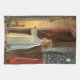 Vintage Abbildung Viktorianisch Frohe Weihnachtsfeiergestaltung mit einem jungen Jungen oder Mädchen, das sich durch das rauschende Feuer am Heiligen Abend im Kamin erwärmen wird. Das Kind warte dem Weihnachtsmann, den Schornstein herunterzukommen und Spielzeuge mitzunehmen. Das Mondlicht scheint auf den neuen gefallenen Schnee im Winter und durch das Fenster. Grüße der Saison!