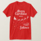 Zeigen Sie, wie sehr Sie an den Zauber von Weihnachten und Weihnachtsmann glauben, mit diesem festlichen Weihnachtsfamilie passenden T - Shirt, der die weiße Silhouette des Schlittens des Weihnachtsmanns mit seinen Rentieren zeigt, der auf einem Sternenpfad fliegt. Die Titelschrift auf oben liest Frohe Weihnachten in weißer handgeschriebener Schrift. Der Text ist in einem eleganten Schriftart in Weiß leicht mit Ihren Wünschen, dem Jahr, dem Familiennamen oder dem Firmennamen anpassbar. Dieses Shirt eignet sich perfekt für Familienessen und Wiedersehen oder kann als Weihnachtsausstattung für Geschäftsleute getragen werden