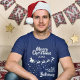 Zeigen Sie, wie sehr Sie an den Zauber von Weihnachten und Weihnachtsmann glauben, mit diesem Weihnachtsfamilien passenden T - Shirt, der die weiße Silhouette des Schlittens des Weihnachtsmanns mit seinen Rentieren zeigt und auf Sternenspuren fliegt. Die Titelschrift auf oben liest Frohe Weihnachten in weißer handgeschriebener Schrift. Der Text ist in einem eleganten Schriftart in Weiß leicht mit Ihren Wünschen, dem Jahr, dem Familiennamen oder dem Firmennamen anpassbar. Dieses Shirt eignet sich perfekt für Familienessen und Wiedersehen oder kann als Weihnachtsausstattung für Geschäftsleute getragen werden