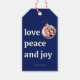 Dieses minimalistische Design besticht durch eine klassische "Liebe, Frieden und Freude"-Botschaft, herzliche Wünsche, moderne und elegante Typografie auf elegantem dunkelblauen Hintergrund. Zusammen mit einem spielerischen Weihnachtsbauble-Foto ist dieses Geschenketikett perfekt für alle, die wirklich personalisierte Geschenkartikel mit einer fröhlichen Touch suchen. Vollständig anpassbar mit Ihrem Foto und Ihren Namen. Ideal, um Weihnachtsfreuden mit zeitgenössischem Flair und zeitloser Eleganz zu vermitteln. Brauchen Sie Hilfe bei der Anpassung? Kontakt remidevandesigns@gmail.com RemideVan©
