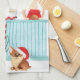 Weihnachts Feiertag Backen Watercolor Küchenhandtücher Teetücher bietet eine niedliche Aquarellbilder eines Mädchens, das in einer Festküche gebacken wird, während der Schnee fällt, während ihr Hund eine Weihnachtsmannmütze trägt. Der Text "Es ist die schönste Zeit des Jahres" ist in handgeschriebener Kalligraphieschrift geschrieben. Ideal für Weihnachten und Feiertage. Entworfen von ©Evco Holidays www.zazzle.com/store/evcoholidays