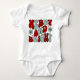 Weihnachten Merry and Bright Retro Groovy Festive Modern Baby Bodysuit hat einen Text "Merry and Bright" in moderner rot-grüner Schrift-Typografie mit Schriftzeichen und mit Stars und Blume akzentriert. Ideal für die erste Weihnachtszeit, die Babydusche oder das Geschenk für den Urlaub. Entworfen von ©Evco Holidays www.zazzle.com/store/evcoholidays