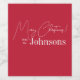 Das ist ein modernes, fröhliches Weihnachtsdesign. Es ist in festlichem Rot und Weiß und hat die Nachricht "Frohe Weihnachten! von den Johnsons". Ideal für Ihr Party oder Feiern in dieser festlichen Saison, und ideal für Geschenke und Gastgeschenke. Fügen Sie einfach Ihren Namen in das Textfeld ein, um eine persönliche Note zu erhalten. Hier können Sie auch die Erholung des Textes ändern, wenn Sie gewollt werden. Karo aus dem Entwurfsbearbeitungsprogramm, um die Farbe oder den Schriftart zu ändern. Frohe Weihnachten! Wenn Sie Hilfe bei Personalisierung, passenden Produkten oder einem benutzerdefinierten Design benötigen, kontaktieren Sie mich über zazzle Chat oder per E-Mail: ursuladawnmoon@gmail.com