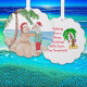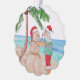 Eine niedliche Hand gemalt Aquarell Snowbird Weihnachten humorvolle Schmuck. Santa Dekoration einer Palme mit Ornamenten am Strand.