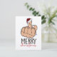 Eine lustige Weihnachtskarte mit einer Hand, die den Finger gibt und eine Weihnachtsmannmütze trägt. Front sagt Frohe Weihnachten, während der Rücken sagt: "und für alle eine gute Nacht" Diese Karte zeigt auf White Felt Papier, stellen Sie sicher, Karo, wenn das Ihre Wahl ist.
