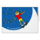 Weihnachten für einen Freund, Skateboarder mit Weihnachtsbeleuchtung. Die Karte zeigt eine digitale Abbildung eines Jungen auf seinem Skateboard, der die halbe Pfeife hochfährt. Er bringt etwas Licht und Freude mit sich, in Form von Saiten von Weihnachtslichtern. Helles und farbenfrohes Design. Kunst, Bild und Vers Copyright Shoaff Ballanger Studios.