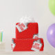 Fun Packpapier speziell für das Weihnachtsbaby jedes Alters! Der Weihnachtsmann hat ein Schild, das HAPPY BIRTHDAY sagt, mit einem hellen roten Hintergrund. Von Scarebaby Design.