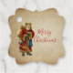 Gönnen Sie sich Tags mit einem Vintagen Weihnachtsmann aus der Alten Welt. Klassische alte Welt santa, mit seinem berühmten roten Mantel und einer Tasche voller Spielzeuge. Dieser altmodische Weihnachtsmann ist schlank und hält einen Gehstock, um durch das Land zu reisen und allen Mädchen und Jungen Spielzeuge zu schenken. Alter Pergamentstil.