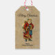 Geschenke Tags mit einem Vintagen Alten Weihnachtsmann. Klassische alte Welt santa, mit seinem berühmten roten Mantel und einer Tasche voller Spielzeuge. Dieser altmodische Weihnachtsmann ist schlank und hält einen Gehstock, um durch das Land zu reisen und allen Mädchen und Jungen Spielzeuge zu schenken. Alter Pergamentstil.