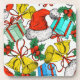 Design mit Weihnachtsmütze, Weihnachtsglocken und Geschenken.