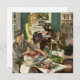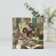 Vintage Illustration Fröhliches Weihnachtsdesign mit einer fröhlichen Familienszene in einem Wohnzimmer mit Mama, Papa und den Großeltern. Sie sitzen, chatten, trinken Cocktails und verpacken Weihnachtsgeschenke für die Kinder.