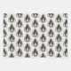Weihnachtsfeiertag koordinierende Packpapier 3 Blatt Set. Blatt 1 hat drei Zwerge und einen Weihnachtsbaum gemustert auf einem weichen blauen Hintergrund. Blatt 2 hat weiche blaue Sterne und Blatt 3 hat weiche blaue Schneeflocken.