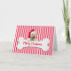 Niedliches goldenes Retriever mit einer Weihnachtsmannmütze mit Hundeknochen und fröhlichem Weihnachtstext. Der gestreifte Hintergrund kann in schlichten Farbhintergrund geändert oder gelöscht werden.