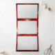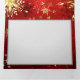 Roter Weihnachtsgebirge mit goldenen und weißen Schneeflocken. Goldene Schneeflocken.
