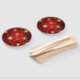 Roter Weihnachtsgebirge mit goldenen und weißen Schneeflocken. Goldene Schneeflocken.