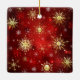 Weihnachten Goldene Schneeflocken im roten Hinterg Keramikornament