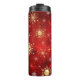 Weihnachten Goldene Schneeflocken im roten Hinterg Thermosbecher