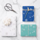 Weihnachten Grün Blau Weiße Schneeflocke Geschenkpapier Set