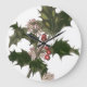 Weihnachten, Grüne Holly-Pflanze mit Berries Große Wanduhr