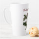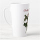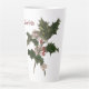 Leicht zu anpassen latte Tasse, fügen Sie einfach Ihren Namen! Vintage Abbildung Viktorianisch Era Frohe Weihnachtsfeiergestaltung mit einem Blumenzweig mit heiligen Blätter, roten Beeren und rosa Blume. Glückliche Feiertage und Grüße der Saison!