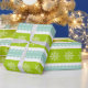 Weihnachten Grüne und Blaue Streifen mit Schneeflo Geschenkpapier