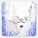 Weihnachten Gruß Hirsche Blaue Schneeflocken Quadratischer Aufkleber