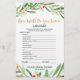 Dieses Weihnachtskranz "Was ist in der Tasche" ist perfekt für ein Brautparty im Winter. Auf der Vorderseite der Spielkarte steht "Wie gut kennst du die Braut" und auf der Rückseite der Karte steht "was in deiner Handtasche ist". Das Design ist mit einem grünen Kranz in Aquarelltönen mit roten Beeren und einem eleganten Imitat Gold Glitzer Schriftart ausgestattet. Personalisieren Sie die Kartenvorderseite mit dem Namen der Braut und des Brautparty. Bitte beachten Sie: Dieses Design enthält keinen echten Gold-Glitzer. Es ist eine qualitativ hochwertige Grafik, die wie glänzende goldene Funkeln aussieht.