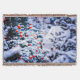 Sparrow und eine Taube vom Vogelfeeder im Winter. Schneebedeckte Weihnachtsbäume, die mit roten, blauen Kugeln geschmückt sind. Weihnachtsdylle. Einmalige, einzigartige Wurfdecke. Sie können dieses Design auf eine große Vielfalt anderer Produkte übertragen, wählen Sie einfach ein Produkt aus einer Reihe unten. Verwenden Sie die Schaltfläche Anpassen und die Option Anpassen/Füllen, um das Bild bei Bedarf an das Produkt anzupassen. Kaufen Sie einen, machen Sie Spaß und sind Sie glücklich!