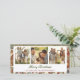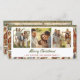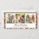 Dieses Weihnachtskartendesign besticht durch eine festliche Dorfszene während der Ferienzeit. Schneebedeckte Gebäude mit warmen, leuchtenden Lichtern aus den Fenstern schaffen eine gemütliche und einladende Atmosphäre. Die Szene ist voller Leute, die in traditionellen Winterkleidung gekleidet sind, Geschenke tragen und gemeinsam feiern. Im Hintergrund befindet sich ein bezaubernder Wald mit immergrünen Bäumen, der das winterliche Ambiente verstärkt. Auf der Kartenvorderseite befinden sich drei Bereiche, in denen Sie persönliche Fotos für die ganze Familie hochladen können, um eine personalisierte Touch hinzuzufügen. Die Aufschrift "Frohe Weihnachten" wird elegant angezeigt und ergänzt den festlichen Geist der Karte.