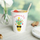 Dieses lustige Weihnachten im Juli Papier Tasse mit einem gelben Ananas dekoriert als Weihnachtsbaum und mit Sonnenbrille tragen! Original Wasserfarbe © Michèle Davies.