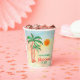Feiern wir Weihnachten im Juli mit einer GRILLEN oder einem Party! Diese farbenfrohen Papiertassen sind mit Palmen und Streichelleuchten auf einem Aquarell dekoriert. Einfach anpassbar. Wenn wir unsere Kunstwerke erstellen, werden Sie dieses exakte Bild von anderen Designern nicht finden. Original Wasserfarbe © Michele Davies.