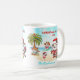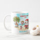 Weihnachten im Juli oder Aussie Weihnachten Tasse mit einem niedlichen Weihnachtsmann und seinen Kumpels am Strand. Personalisieren Sie den Text oder verließ ihn leer. Kate Eden Art