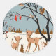 In den schneebedeckten Wäldern finden die kleinen Tiere Weihnachtsfeiertage, die an den Baumgliedmaßen hängen. Weiche Farben. Kleine Tiere sind Vögel, Eichhörnchen, Hirsche und Brötchen.