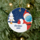 Funny Fröhliche Weihnachten 2020 Ornament mit dem Weihnachtsmann mit einer Gesichtsmaske, um Covid während der Pandemie zu bekämpfen. Helfen Sie Kris Kringle während der Quarantäne für das Coronavirus durch soziale Distanzierung und das Tragen von Masken für Ihre Freunde und Familie behalten. Ein Spaß-Gaumen mit einem wunderschönen marineblauen Winterhimmel und Schnee.
