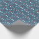 Weihnachten im Winter. Stilisierte rote, grüne Weihnachtsbäume, Weihnachtsbällchen auf blauem Hintergrund.