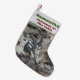 Verbringen Sie Ihren Urlaub in Ihrer Hütte? Dieser Strumpf hat einen rustikalen Holzkornhintergrund. Ihr Name und "Weihnachten in der Hütte" kann leicht personalisiert werden.