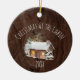 Feiern Sie Weihnachten in diesem Jahr in der Hütte! Dieses Ornament zeichnet sich durch ein rustikales Holzhintergrundbild aus. Auf dem Hintergrund befindet sich eine Aquarellholzhütte, Bäume und Schnee. Die Worte "Weihnachten in der Hütte" Bogen über der Scheune, und unter der Abbildung ist Platz für Sie, das Jahr anzupassen. Lade dein Foto auf die Rückseite des Ornaments hoch und füge Text hinzu!