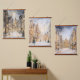 Das Set aus drei Hängeflächen, die sich jeweils von einer silbergrauen und goldfarbenen Szene einer im Winter schneebedeckten Großstadt und Weihnachtsbäumen abheben, ist für die Wintersaison ideal. Alle Bilder scheinen zu funkeln.