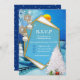 Eine blaue Weihnachtslandschaft mit geometrischem Goldrahmen lässt sich leicht mit Ihrem Text, Schriftart, Schriftart, Papierform und der Wahl von zwölf Papiertypen anpassen.