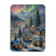 Dieses Weihnachtsmagnet beherbergt ein schneebedecktes Dorf mit hell erleuchteten Häusern in den Bergen, umgeben von hohen Tannenbäumen, polaren Lichtern, die am Himmel leuchten. Hübsches Weihnachtsgeschenk für Freunde und Familie!