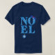 T-Shirt in der Begrüßung "Weihnachten" gemustert mit Retro-Weihnachtsbäumen in Schattierungen eisblau, mit einem heiligen Gewürz und einer Schneeflocke verziert