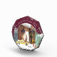 Feiern Sie ein Weihnachtsfest in New York City mit diesem Sake-Acrylblock in einzigartiger geometrischer Form. Das Design besticht durch das Foto Ihrer Reisen, das mit einer illustrierten Freiheitsstatue, dem Empire State Gebäude und einem gelben NYC-Taxi dekoriert ist. Personalisieren Sie sich mit dem Jahr.