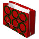 Die perfekte große Geschenktasche für Weihnachten. Diese roten Geschenktaschen sind mit grünen Kränzen versehen.