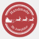 Mithilfe dieses Aufklebers können Sie gelassen werden, dass Ihre selbst gebackenen Kekse, handgefertigten Goodies oder Geschenke von Ihnen selbst gemacht wurden. Das Design zeigt Desteis weiße Silhouette eines Weihnachtsmannes in einem Schlitten mit einigen Rentieren. Das Design ist durch die obere und untere Grenze gerahmt. Es gibt auch zwei personalisierbare Textbereiche. Die Farbe ist rot und weiß.