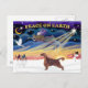 Die Sonne geht auf und enthüllt drei weise Männer, eine Weihnachtstaube und einen irischen Setter. Die Worte sagen Weltfrieden. Eine wunderbare Weihnachtsbotschaft, die auch Ihren Hund in die Feier der Saison einbezieht.